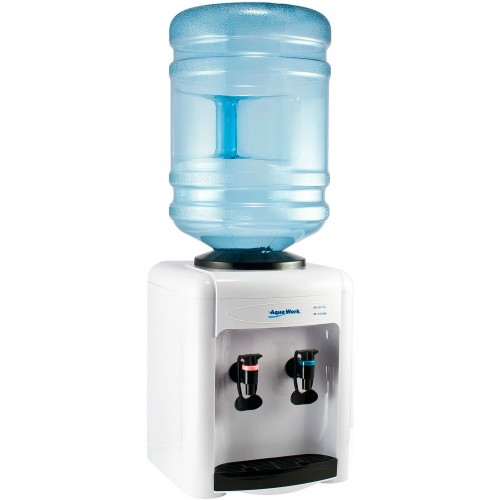 Симпатичный настольный кулер с нагревом, без охлаждения: Aqua Work 0.7-TK, аппарат, который умеет только нагревать бутилированную воду, из второго, синего краника течет вода комнатной температуры.